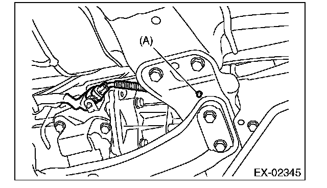 4. Disconnect the connector from the rear oxygen sensor, and remove the clip (A) holding the rear oxygen sensor harness.