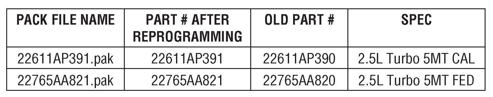 PACK FILE APPLICABILITY