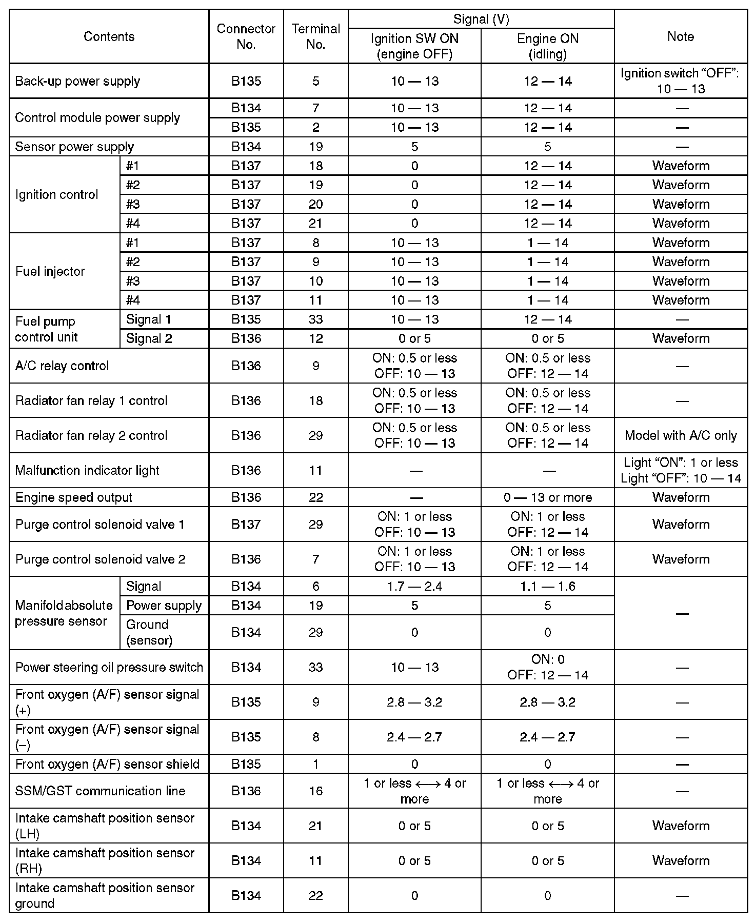 Engine Control Module (ECM) I/O Signal (Part 5):