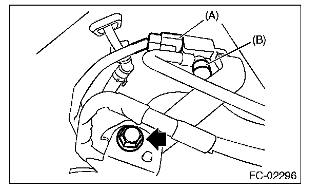 6. Disconnect the pressure hose from the fuel tank pressure sensor (B).