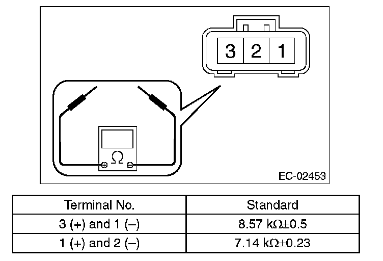 CAUTION: Pay attention to polarity when measuring the resistance in fuel tank pressure sensor.