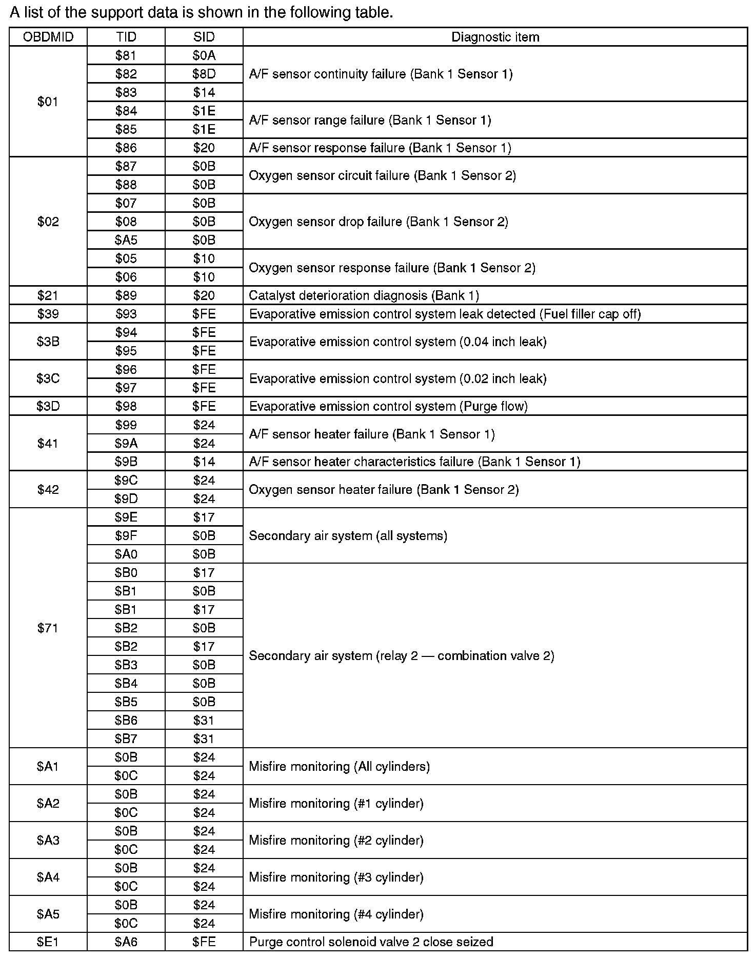 Refer to test value of troubleshooting and data of test limit indicated on the support data bit sequence table.