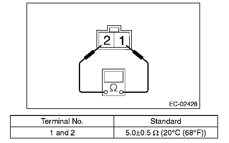 1. Measure the resistance between the terminals of secondary air combination valve RH.
