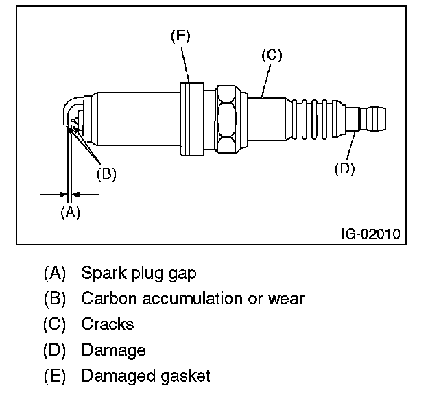 Check the electrodes and inner and outer ceramic insulator of plugs, noting the type of deposits and the degree of electrode erosion.