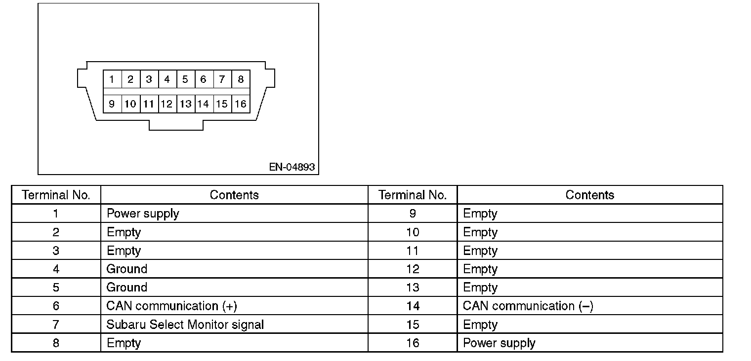 CAUTION: Do not connect any scan tools except Subaru Select Monitor or general scan tool because the circuit for Subaru Select Monitor may be damaged.