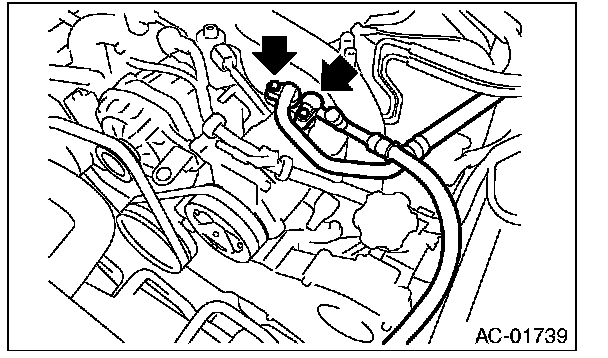 7. Remove the bolt and remove the low-pressure hose and high-pressure hose.