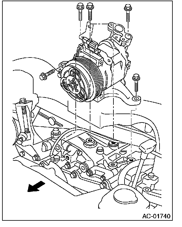 10. Remove the bolts, then remove the bracket from the compressor.