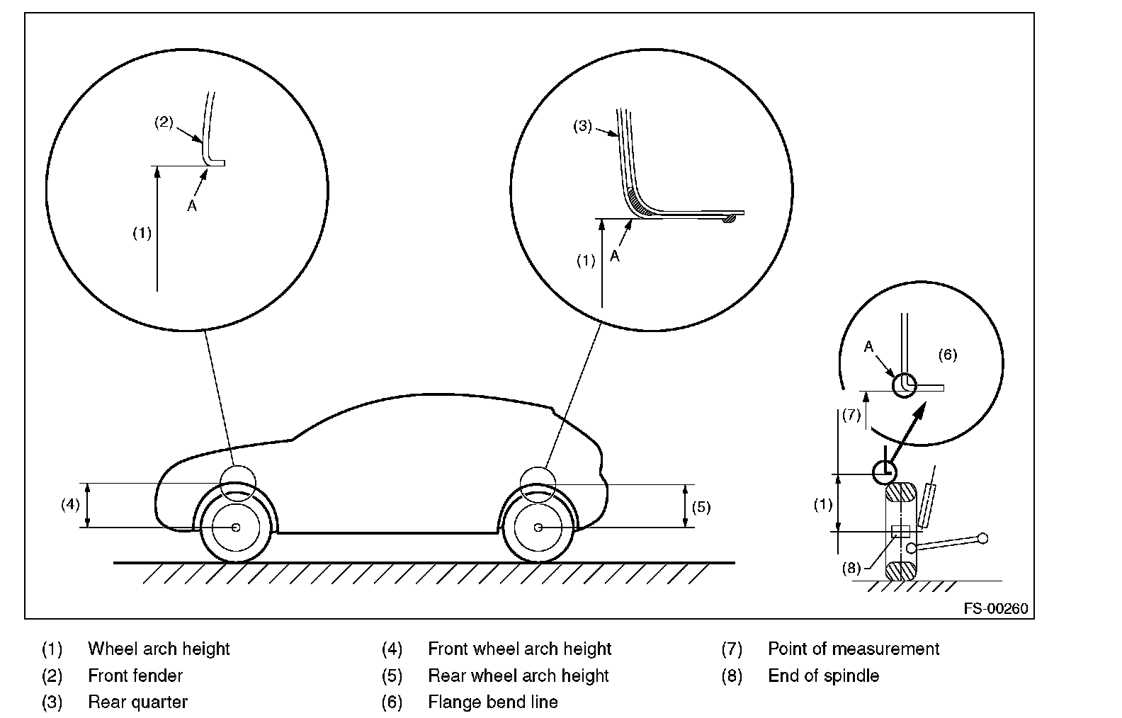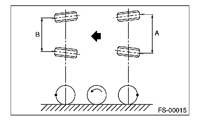 2) Place a mark at the center of both left and right tires, and measure distance "A" between the marks.