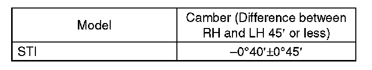 1) When adjusting the camber, adjust it to the following value.