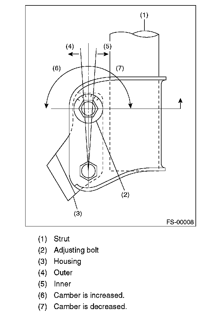 3) Turn the camber adjusting bolt so that the camber is set at specification.