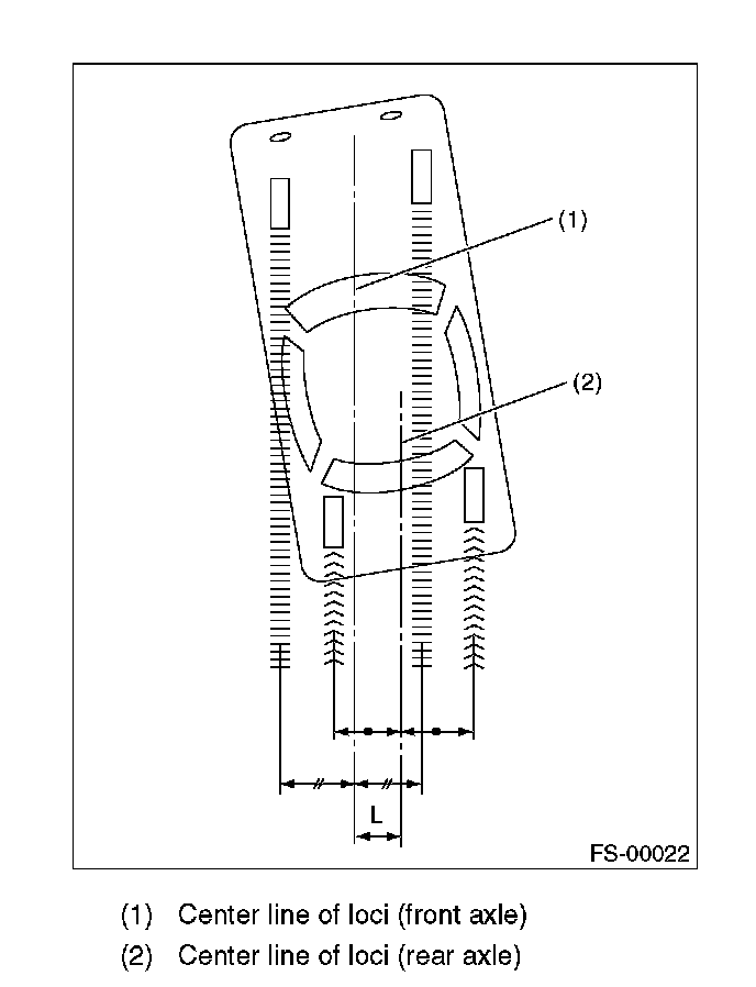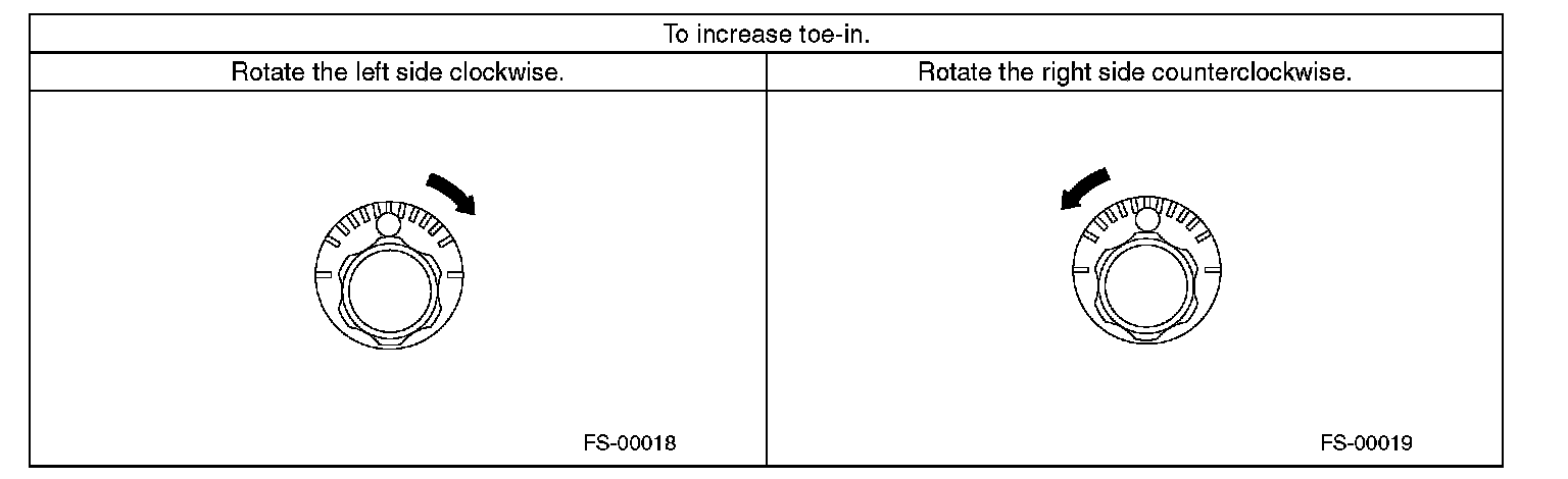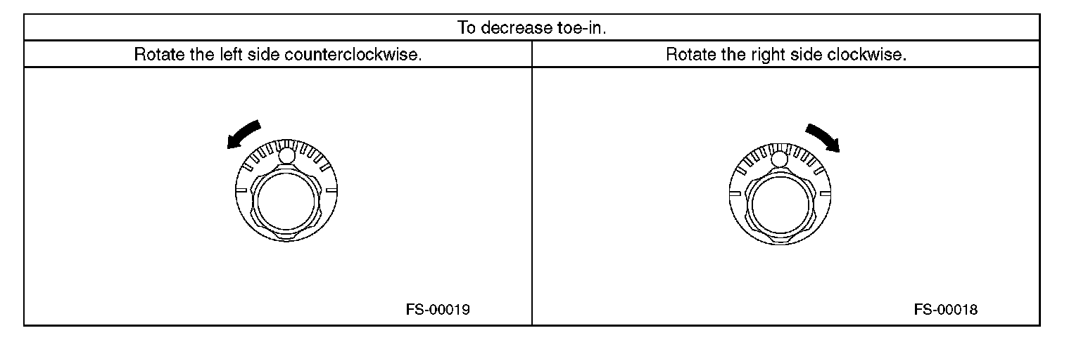 2) When one rear wheel is adjusted in a toe-in direction, adjust the other rear wheel equally in toe-out direction, in order to make the thrust angle adjustment.