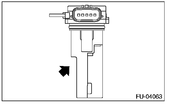 4. Check the voltage changes when air is blown to the mass air flow sensor unit in arrow direction.