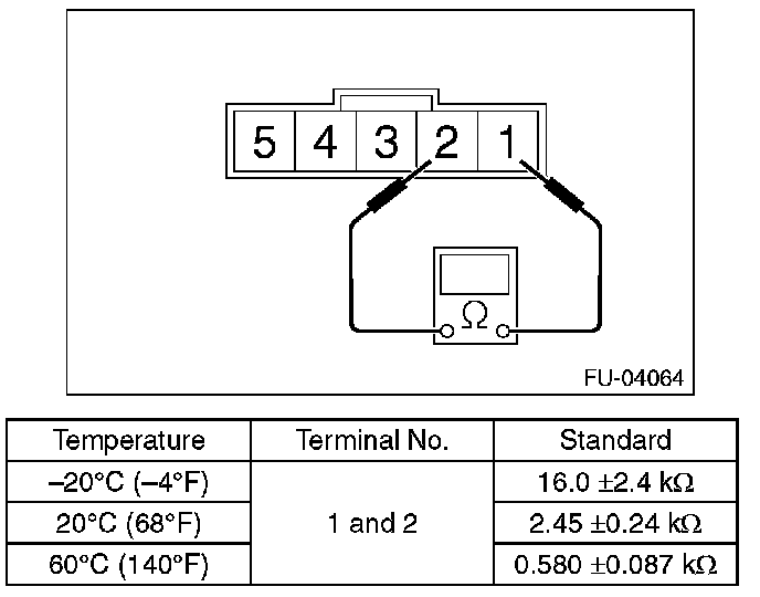 Measure the resistance between intake air temperature sensor terminals.