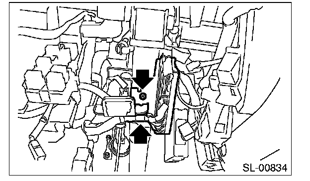 5. Remove two mounting nuts for body integrated unit bracket, and remove the body integrated unit.