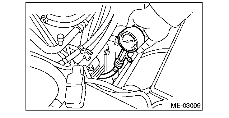 11) Crank the engine by the starter motor, and read the maximum value on the gauge when the needle of compression gauge is steady.
