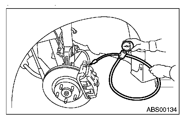 13) Bleed air from RL and RR caliper bodies, and pressure gauge.