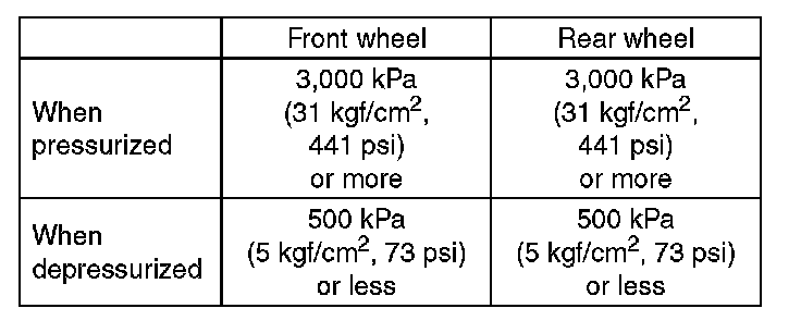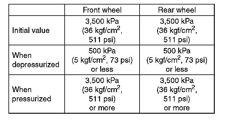 15) Read the values indicated on the pressure gauges and check if it is within specification. Depress the brake pedal and check that it is not abnormally hard, and tightness is normal.