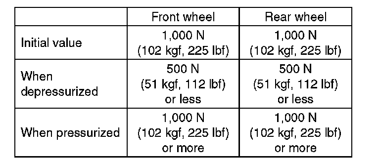 7) Read values indicated on the brake tester and check if the fluctuation of the values between decompression and compression meets specification.