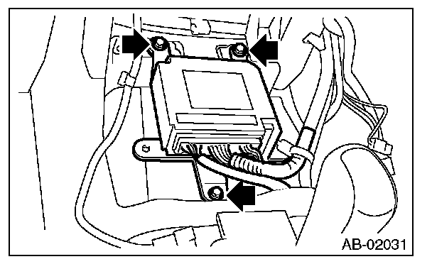 9. Remove the three bolts and remove airbag control module.