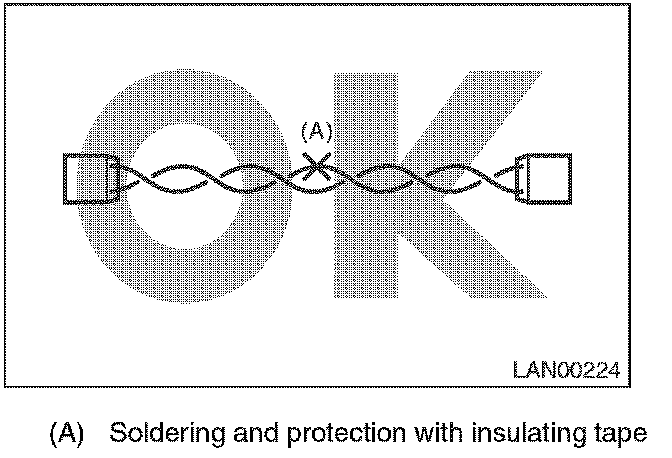 - When repairing the harness, connect the wires using soldering and protect it with insulating tape etc.