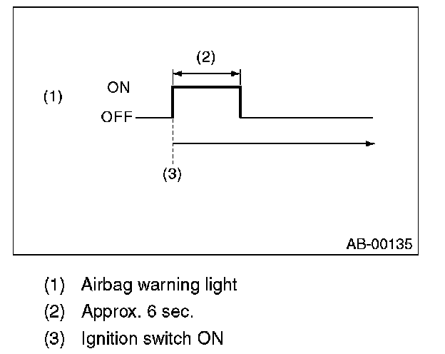 Turn the ignition switch to ON, and confirm that the airbag warning light remains on for approx.