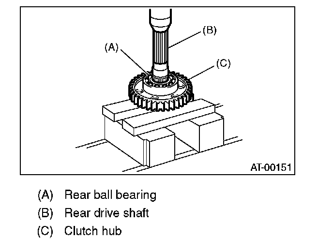 2. Using a press, remove the front and rear side ball bearings and clutch hub.