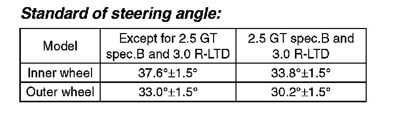 Standard of front toe: IN 3 - OUT 3 mm (IN 0.12 - OUT 0.12 in)