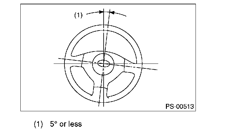3. If the steering wheel spokes are not horizontal when wheels are set in the straight ahead position, or error is more than 5° on the periphery of the steering wheel, correctly re-install the steering wheel.