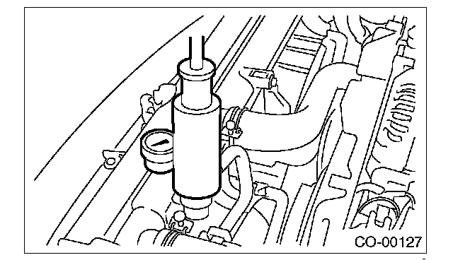 ^ Be careful of the spurt of engine coolant when removing the tester.