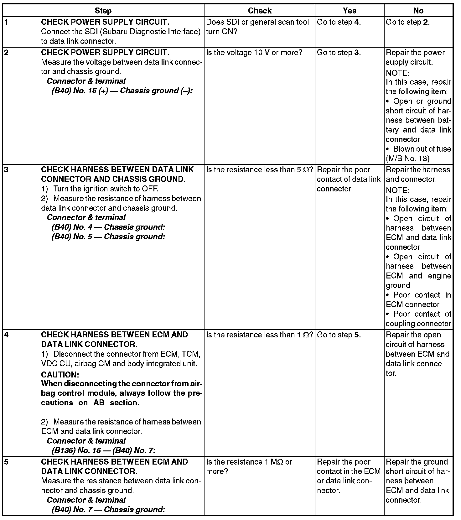 Diagnostic Procedure for Subaru Select Monitor Communication