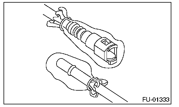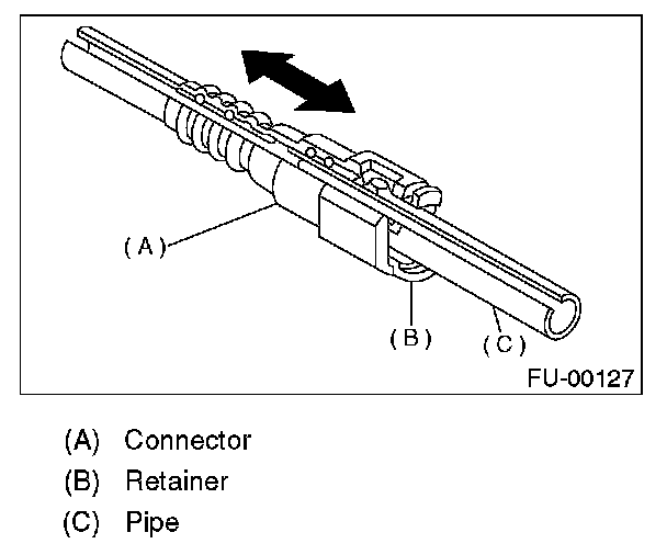 1. Disconnect the quick connector of the fuel delivery line by pushing the ST in the direction of the arrow.