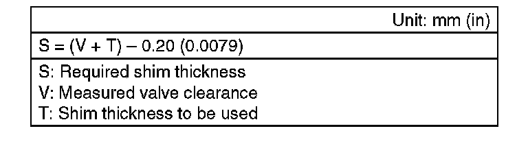 8. Select a shim of suitable thickness from the following table using the measured valve clearance and shim thickness, and install it.