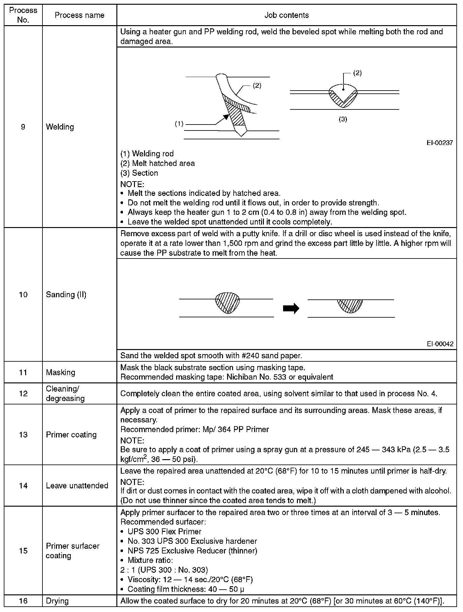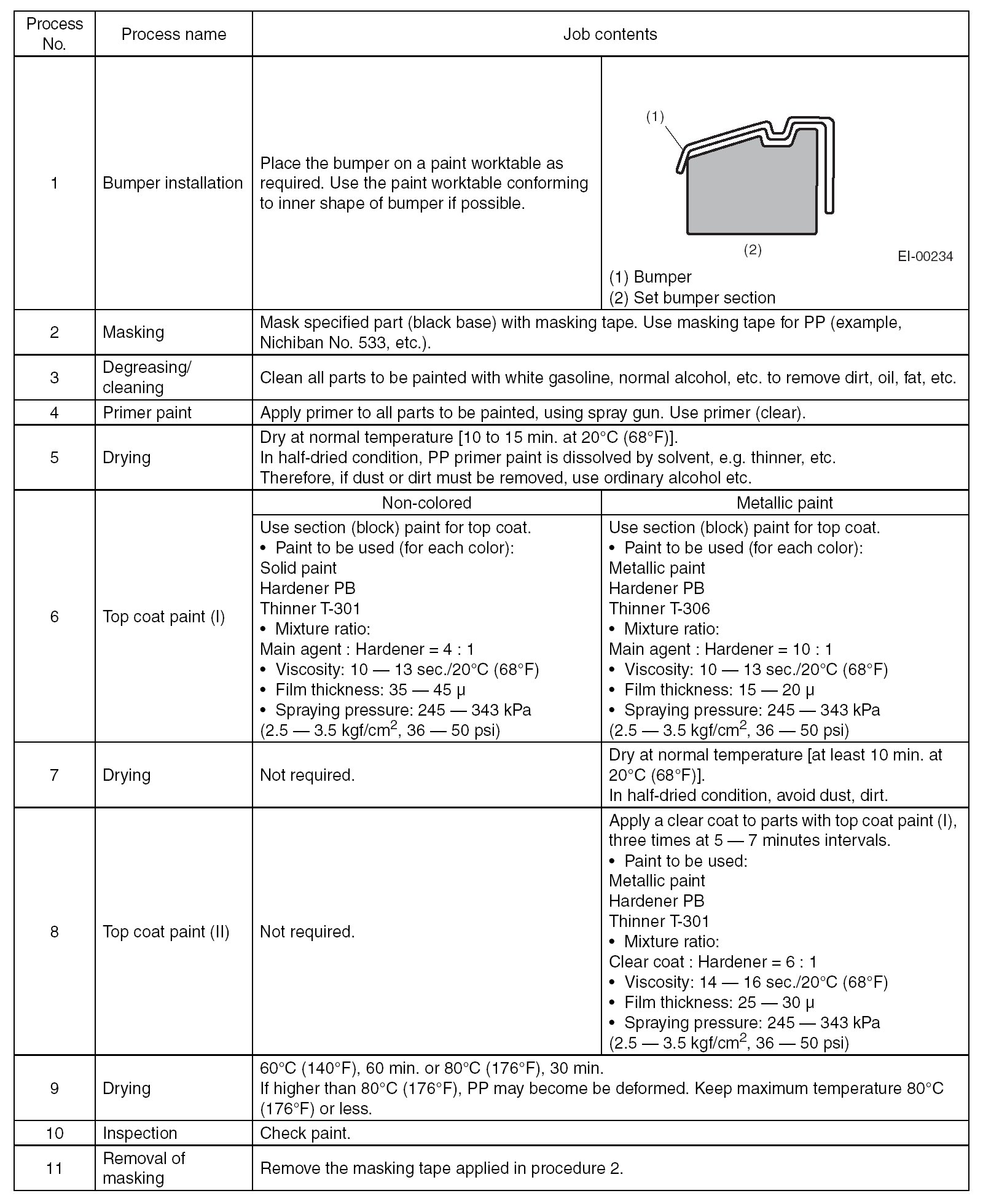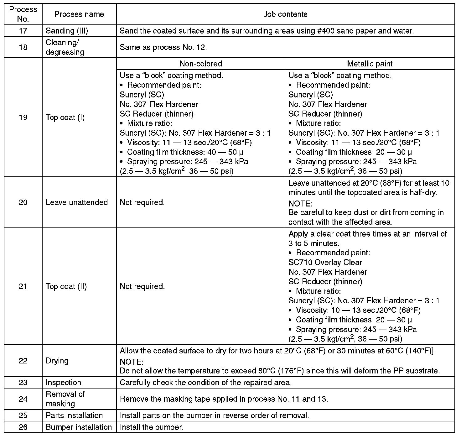 REPAIR INSTRUCTIONS FOR COLORED PP BUMPER