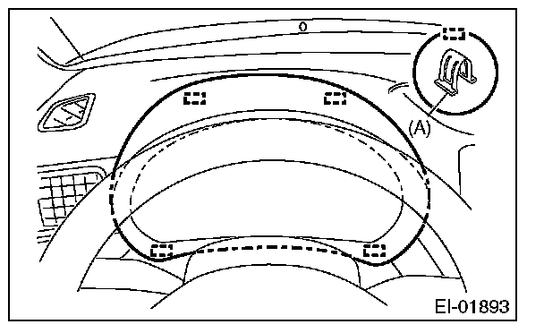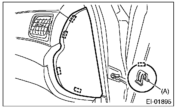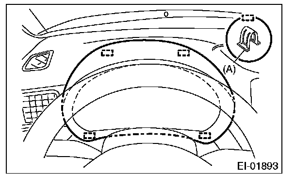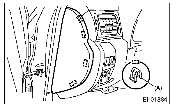 1. Remove the plastic hook (A), and remove the instrument panel side cover LH.