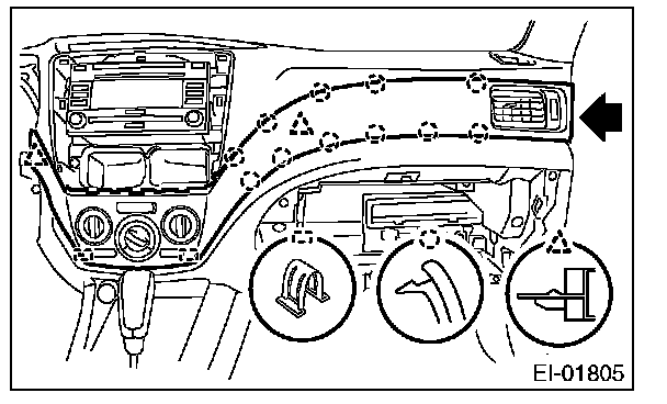 NOTE: When removing the console front panel, pull it in the direction of the rear vehicle.