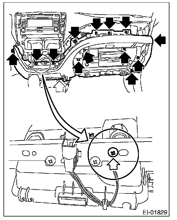 7. Remove the screws and nuts, and remove the instrument panel lower.