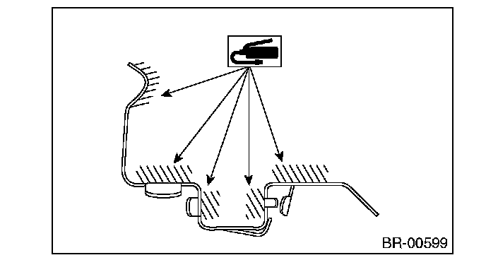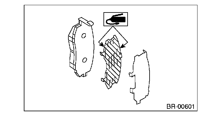 3) Apply a thin coat of Molykote AS880N (Part No. K0777YA010) or grease contained in the pad kit to both surfaces of the pad inner shim.