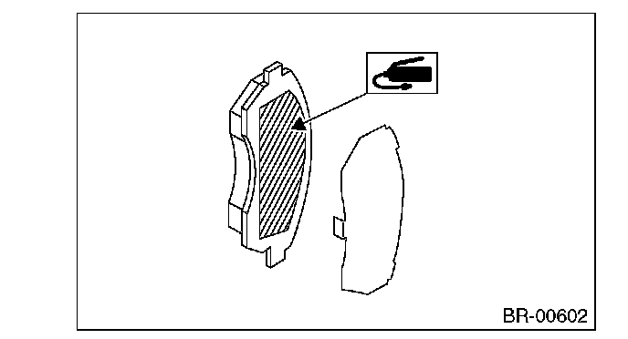 2) Apply a thin coat of Molykote AS880N (Part No. K0777YA010) or the grease contained in the pad kit to the contact surface between the pad and shim.
