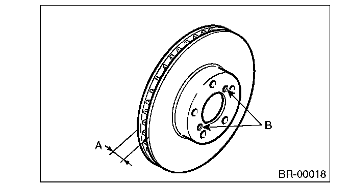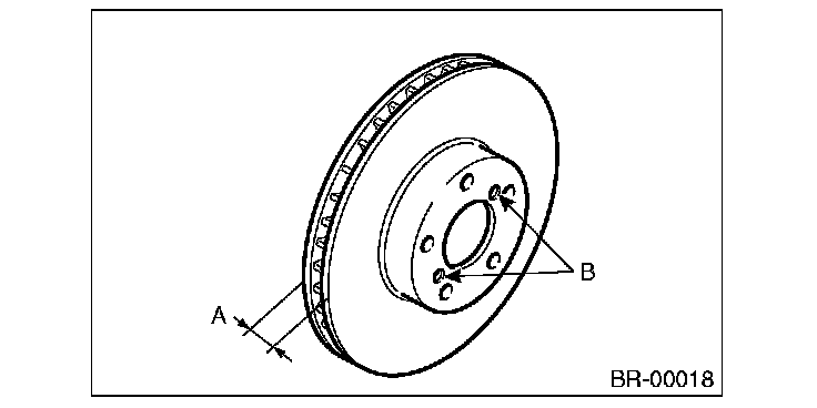If it is difficult to remove the disc rotor from the hub, drive an 8 mm bolt into the threaded section (B) of the rotor, then remove the rotor.