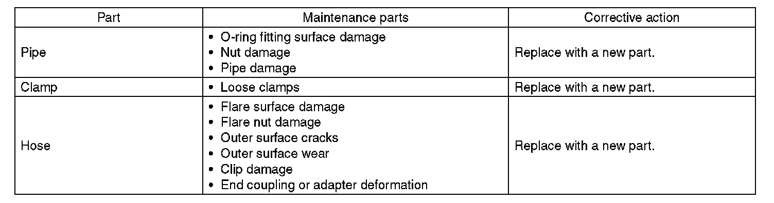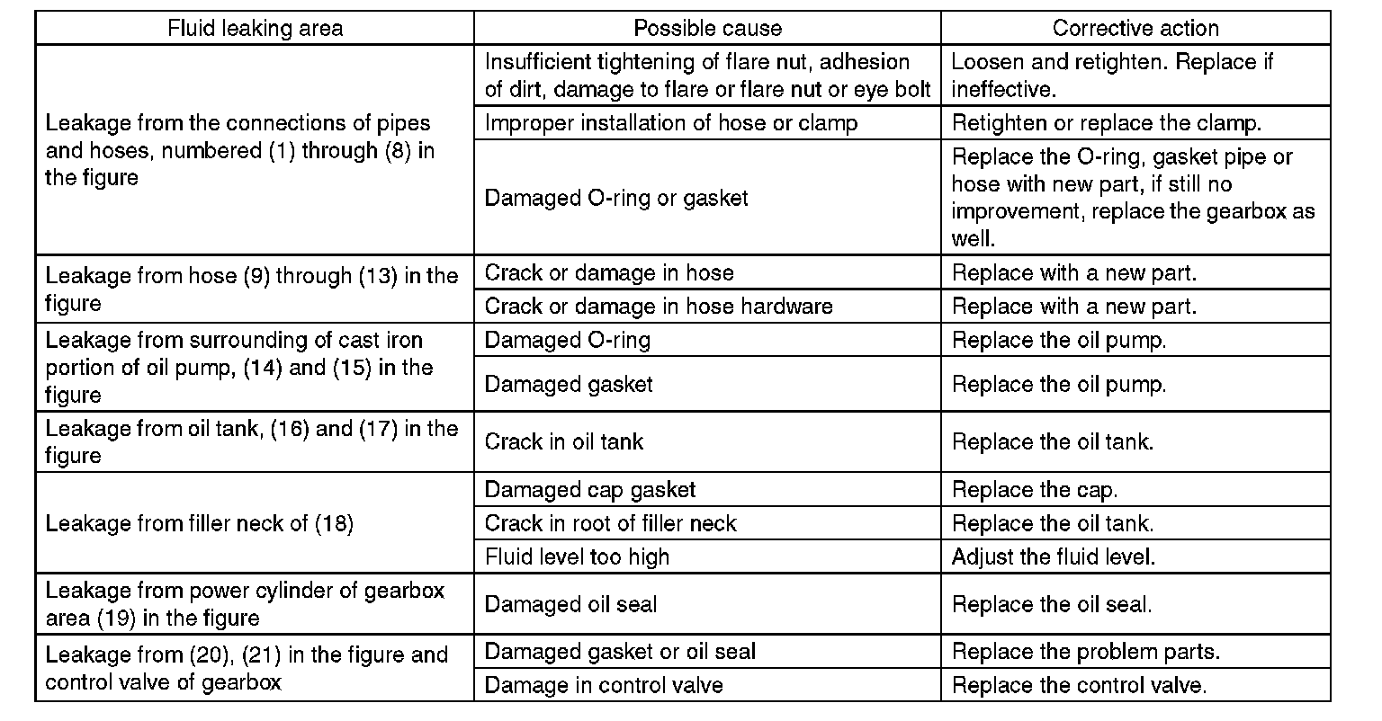 There are conditions in which a fluid leak is diagnosed, but is not actually leaking. This is because the fluid spilt during the last maintenance was not completely wiped off. Be sure to wipe off spilt fluid thoroughly after maintenance.