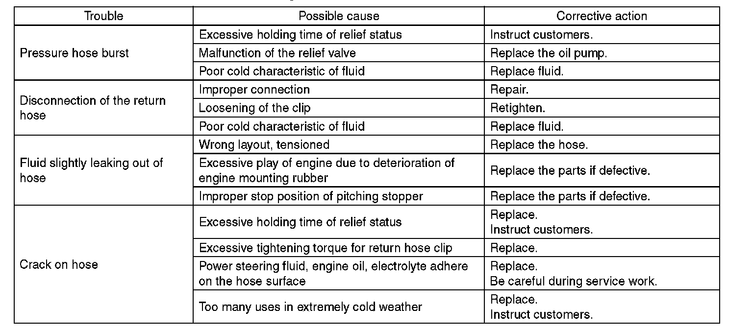 Since resistances for heat or low temperature brittleness are gradually declining according to time accumulation of hot or cold conditions for the hoses and their service lives are shortening accordingly, it is necessary to perform careful inspection frequently when the vehicle is used in hot weather areas, cold weather areas and a driving condition in which many steering operations are required in short time.