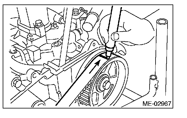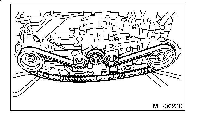- Be careful not to let oil, grease or coolant contact the timing belt. Remove quickly and thoroughly if this happens.