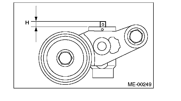 4) Measure the amount of rod protrusion "H" from the end surface of the body. If it is not within specifications, replace the automatic belt tension adjuster assembly with a new part.