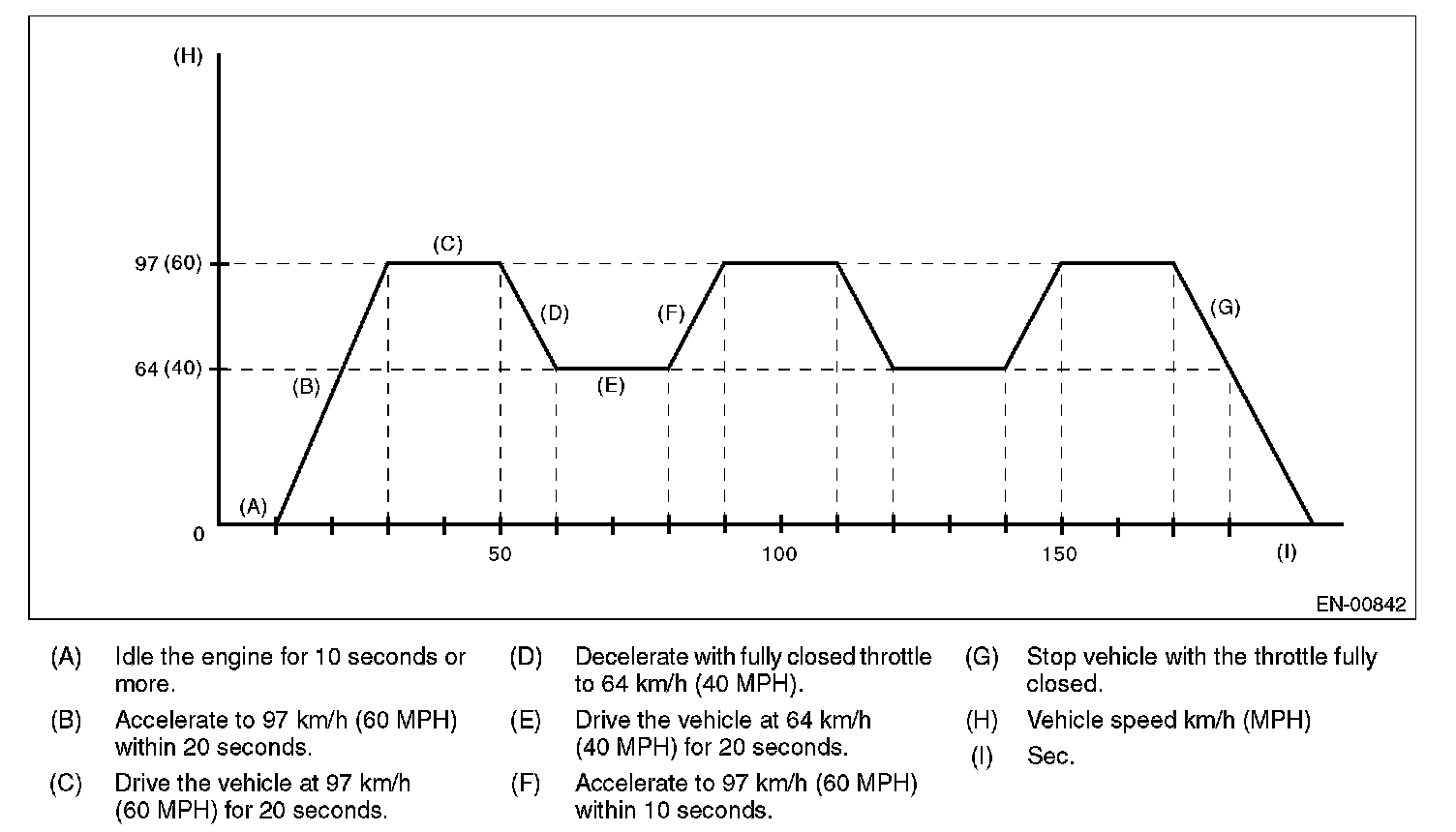 2. DRIVE CYCLE A - DRIVE THE VEHICLE WITH 80 KM/H (50 MPH) FOR 20 MINUTES, AND THEN IDLE THE ENGINE FOR A MINUTE