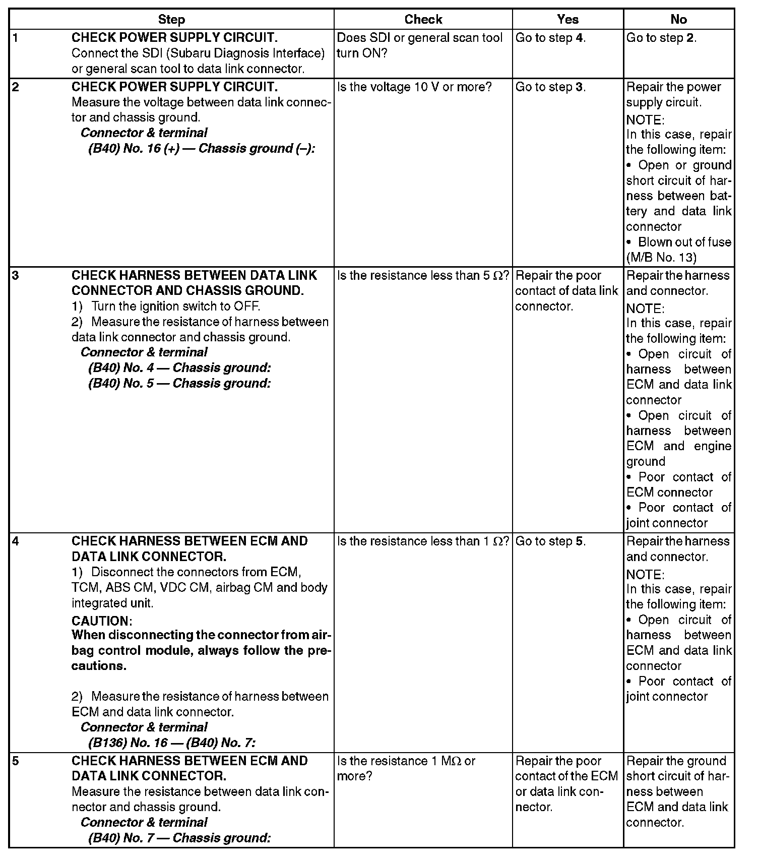Diagnostic Procedure For Subaru Select Monitor Communication