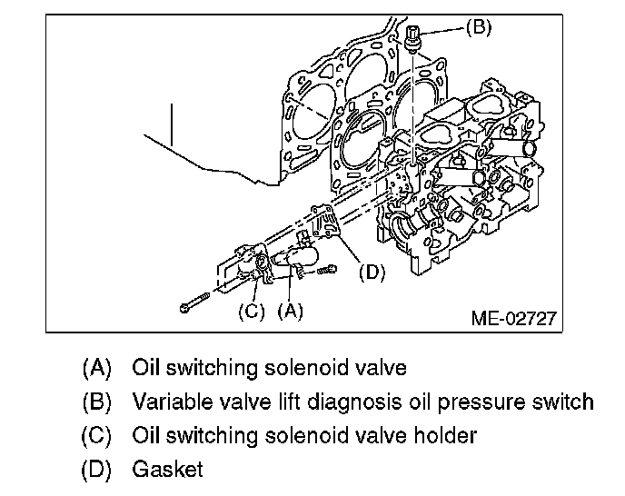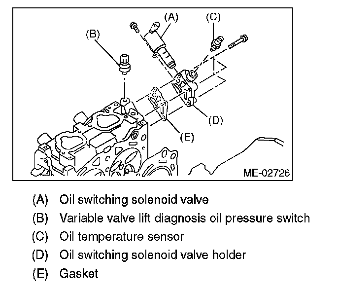 - Install the oil switching solenoid valve to the holder, then install it to the cylinder head.