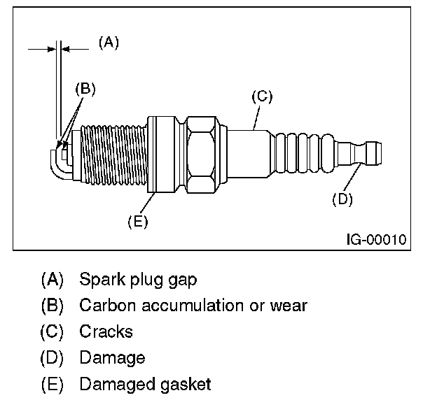 Check the electrodes and inner and outer ceramic insulator of plugs, noting the type of deposits and the degree of electrode erosion.