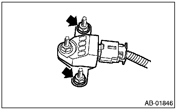 CAUTION: Do not separate the satellite safing sensor and bracket. Doing so will cause the airbag system malfunction. If the sensor is removed from the bracket, be sure to replace with a new part.