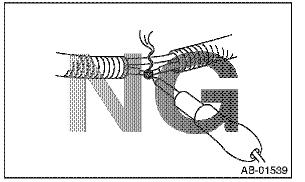 - If damage, open circuit or rust is found on airbag system wiring harness, do not use a soldering equipment to repair. Replace the faulty harness with a new genuine part.