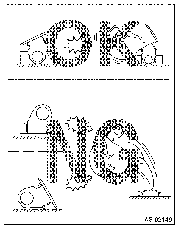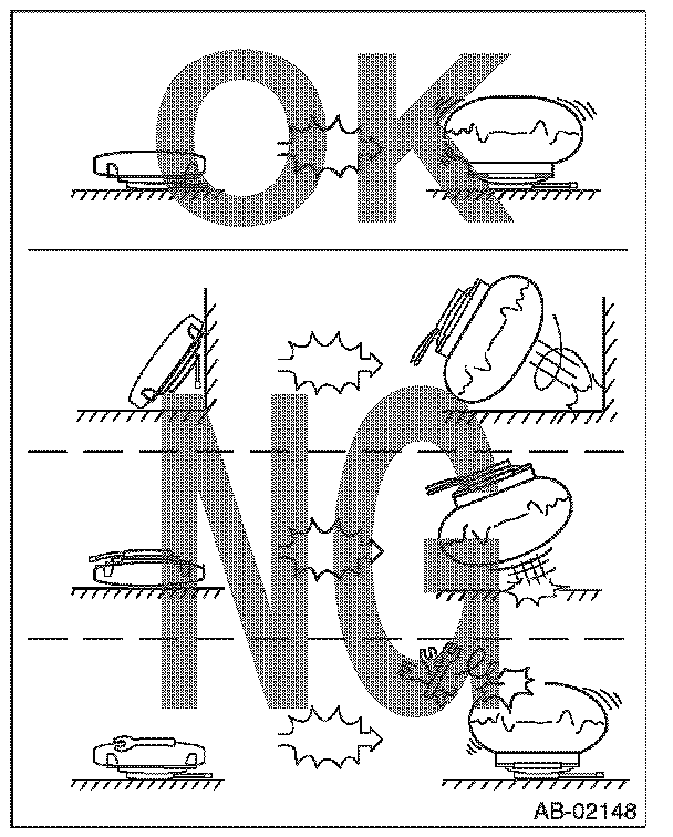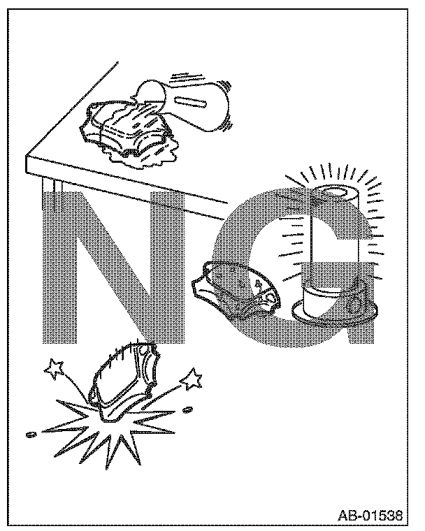 - When storing a removed airbag module, do not place with its pad side facing down. Do not place any objects on the airbag module. Do not pile up the airbag module. If the airbag inflates for some reason when an airbag module pad is touching other objects, it may cause serious accident.